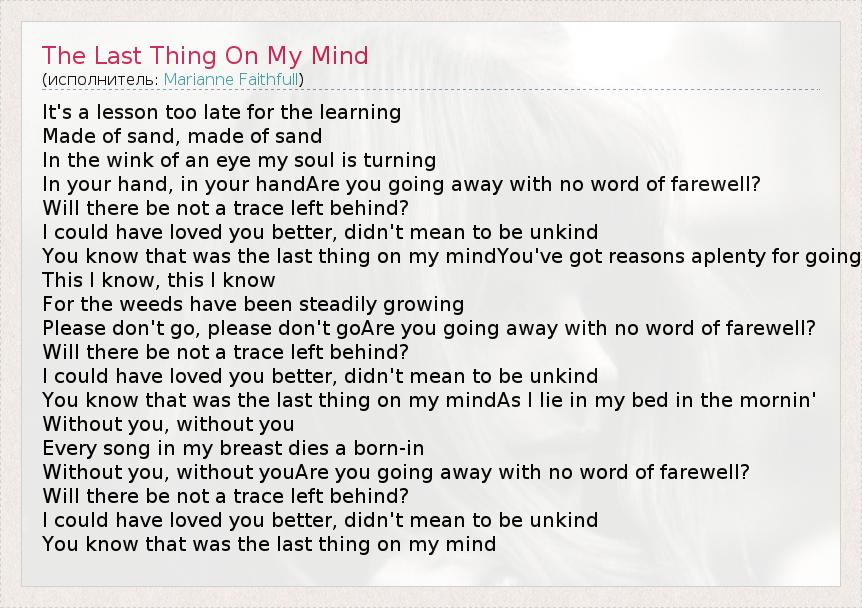 А как ты думаешь, о чем песня "The Last Thing On My Mind" ?