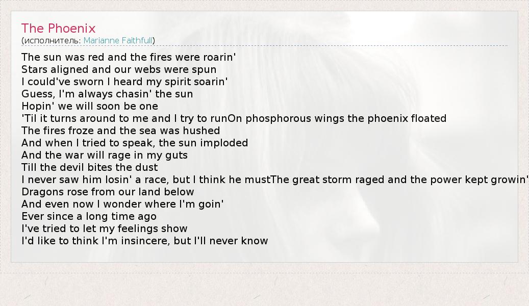 А как ты думаешь, о чем песня "The Phoenix" ?