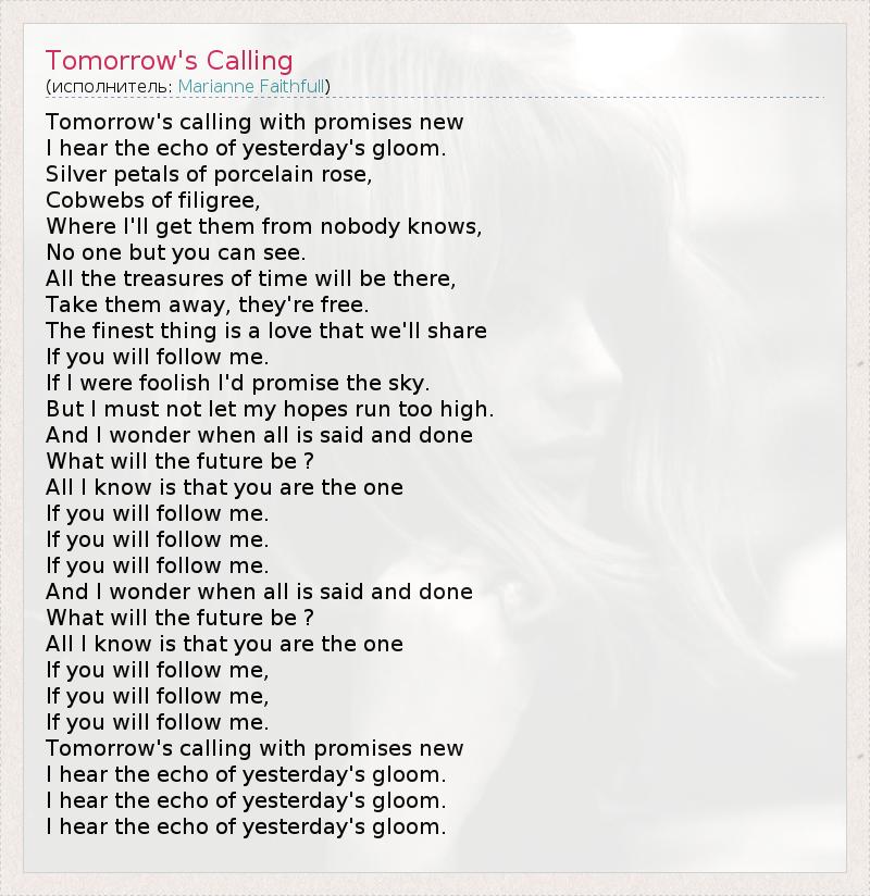 А как ты думаешь, о чем песня "Tomorrow's Calling" ?