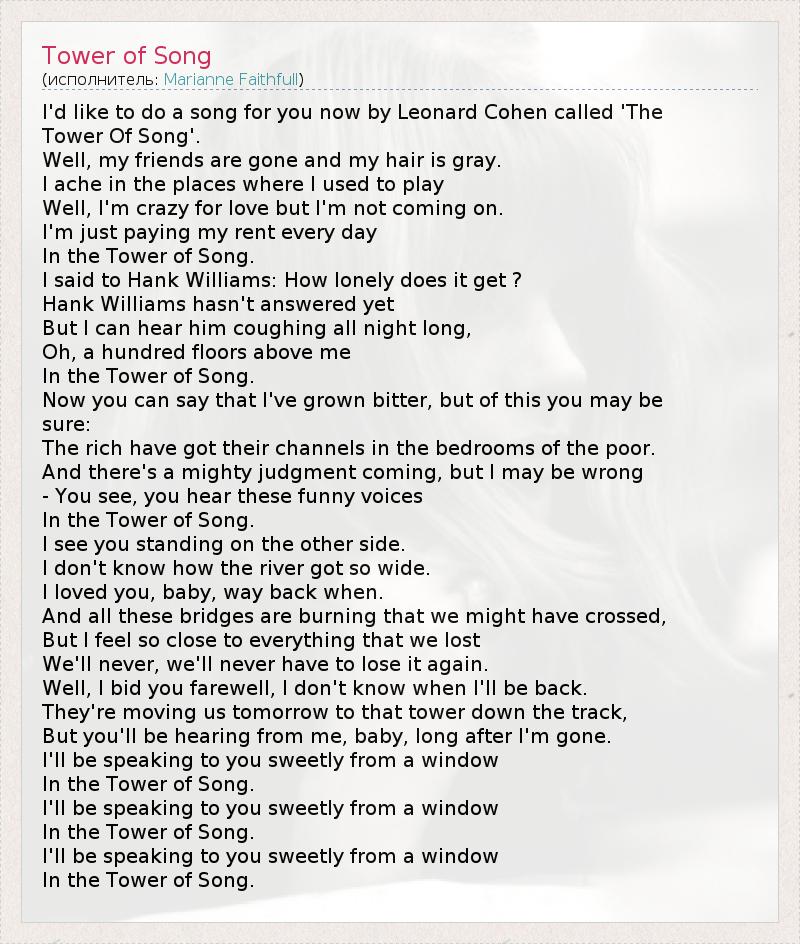 А как ты думаешь, о чем песня "Tower of Song" ?