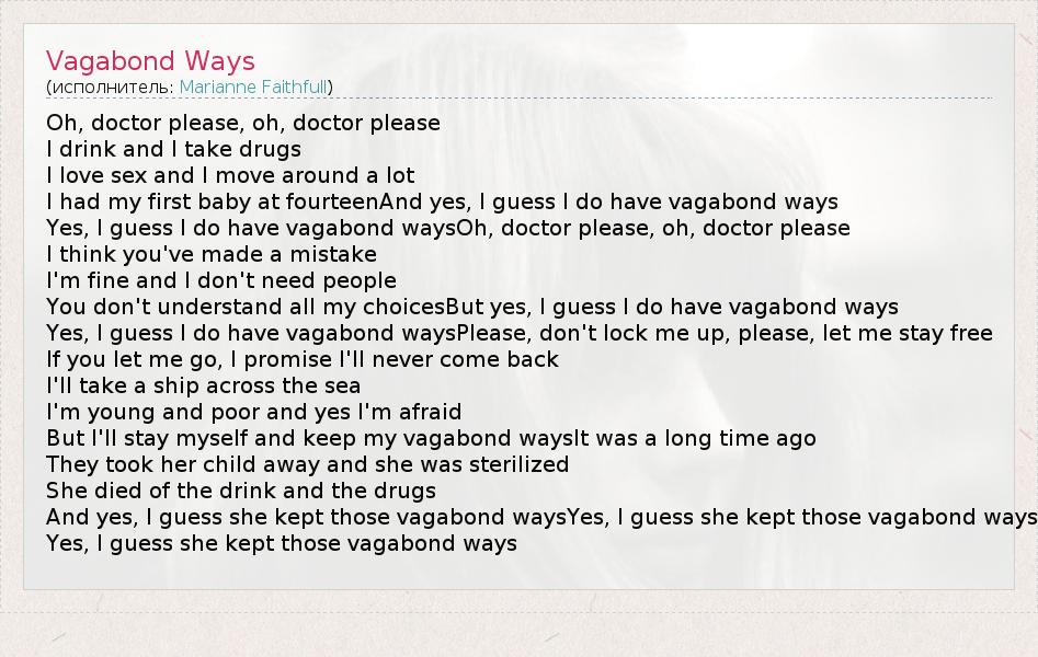 А как ты думаешь, о чем песня "Vagabond Ways" ?