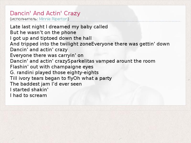 А как ты думаешь, о чем песня "Dancin' And Actin' Crazy" ?