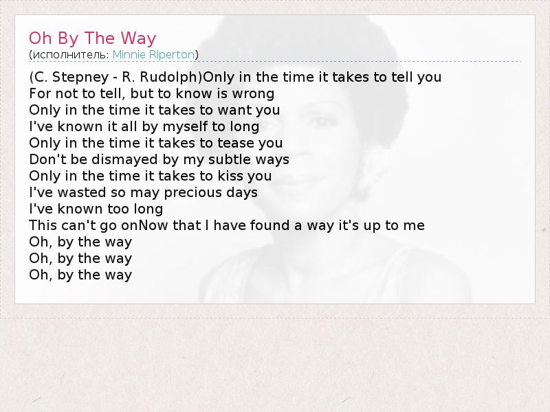 А как ты думаешь, о чем песня "Oh By The Way" ?