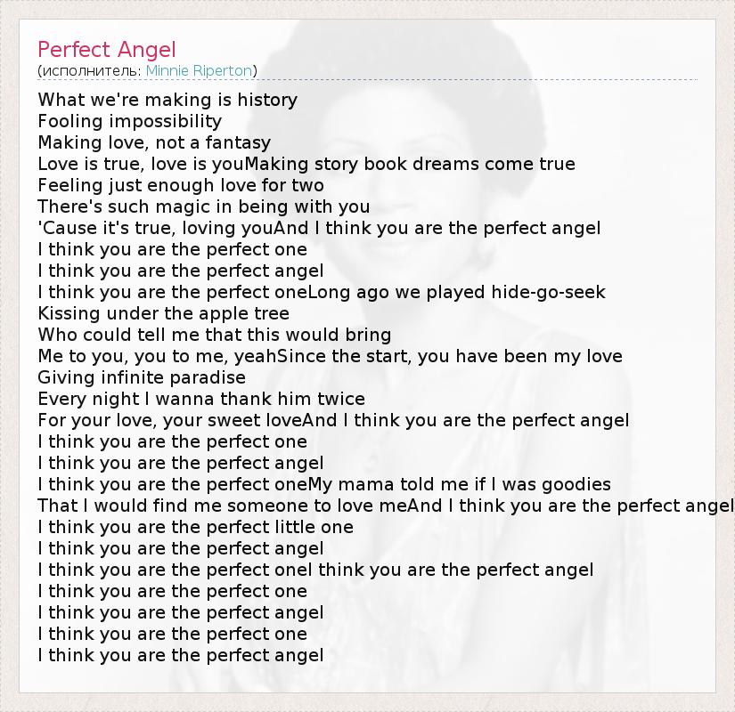 А как ты думаешь, о чем песня "Perfect Angel" ?