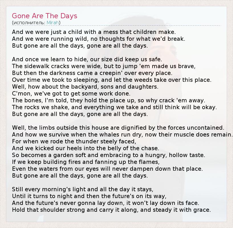 А как ты думаешь, о чем песня "Gone Are The Days" ?