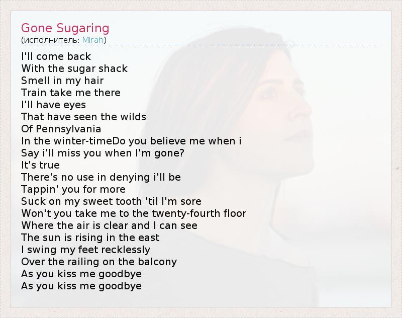 А как ты думаешь, о чем песня "Gone Sugaring" ?