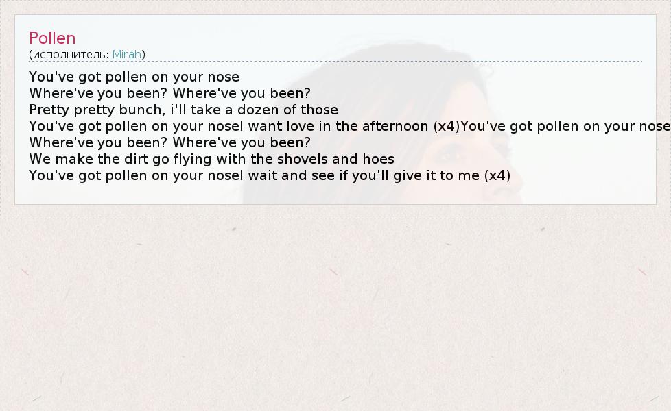 You've got pollen on your noseI wait and see if you'll give it to me (x4)