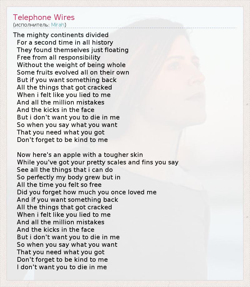 А как ты думаешь, о чем песня "Telephone Wires" ?