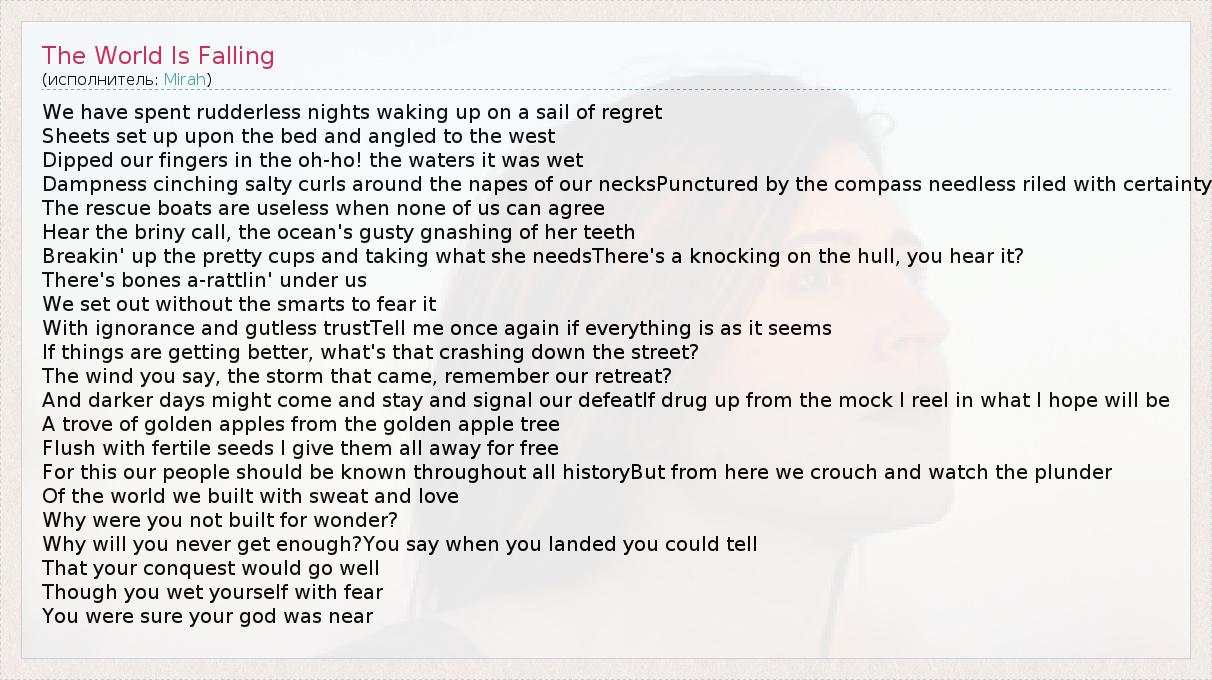 ГлавнаяИсполнителиMirahThe World Is Falling