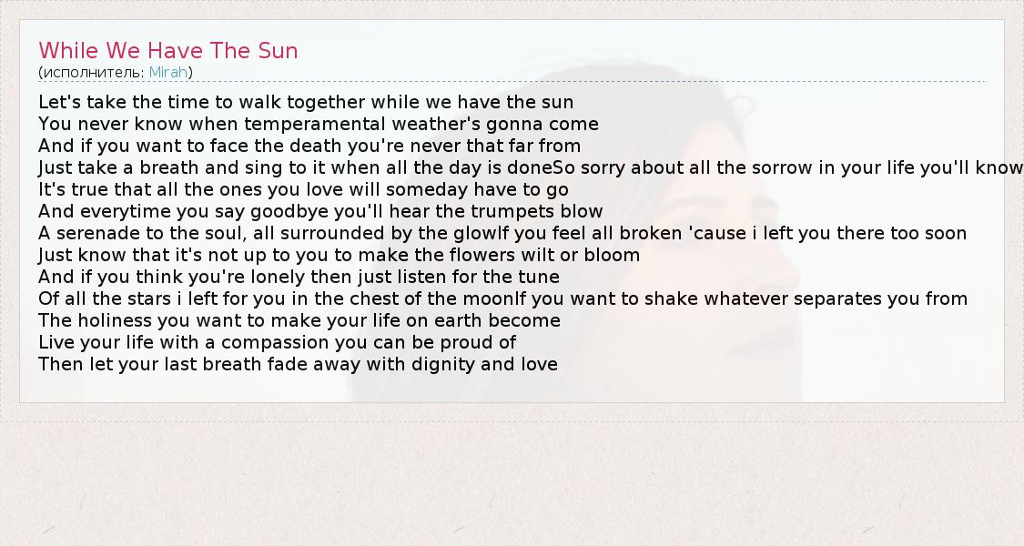 ГлавнаяИсполнителиMirahWhile We Have The Sun
