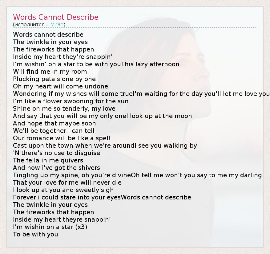 А как ты думаешь, о чем песня "Words Cannot Describe" ?