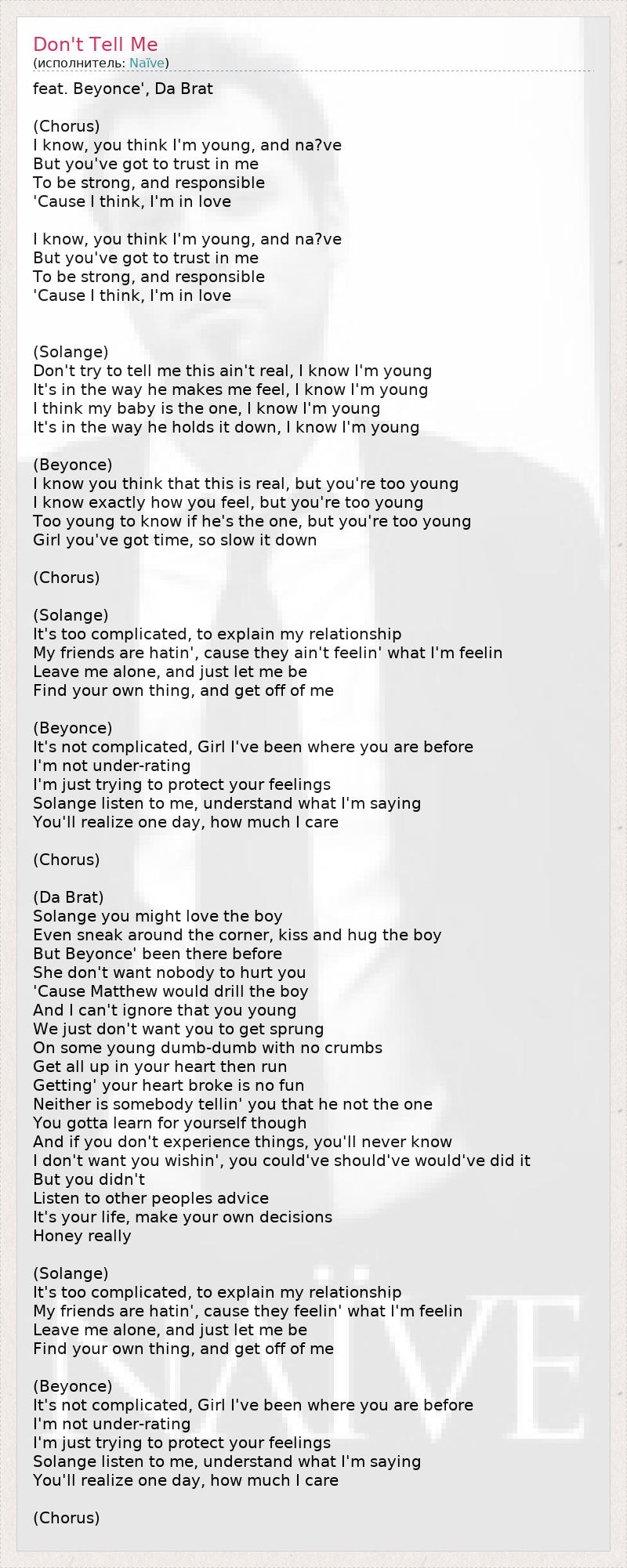 А как ты думаешь, о чем песня "Don't Tell Me" ?