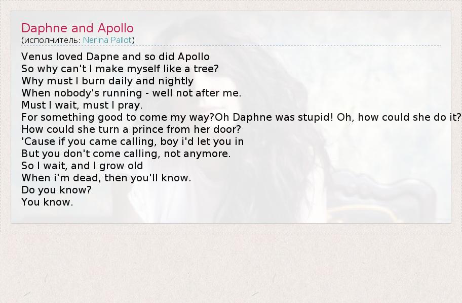 А как ты думаешь, о чем песня "Daphne and Apollo" ?