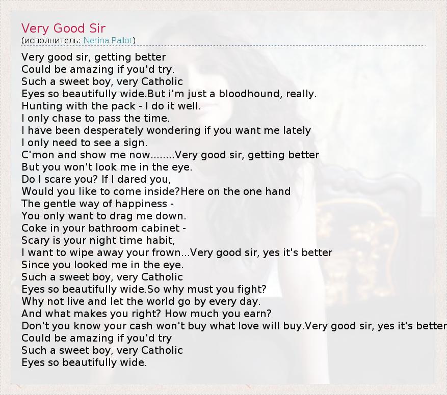 А как ты думаешь, о чем песня "Very Good Sir" ?