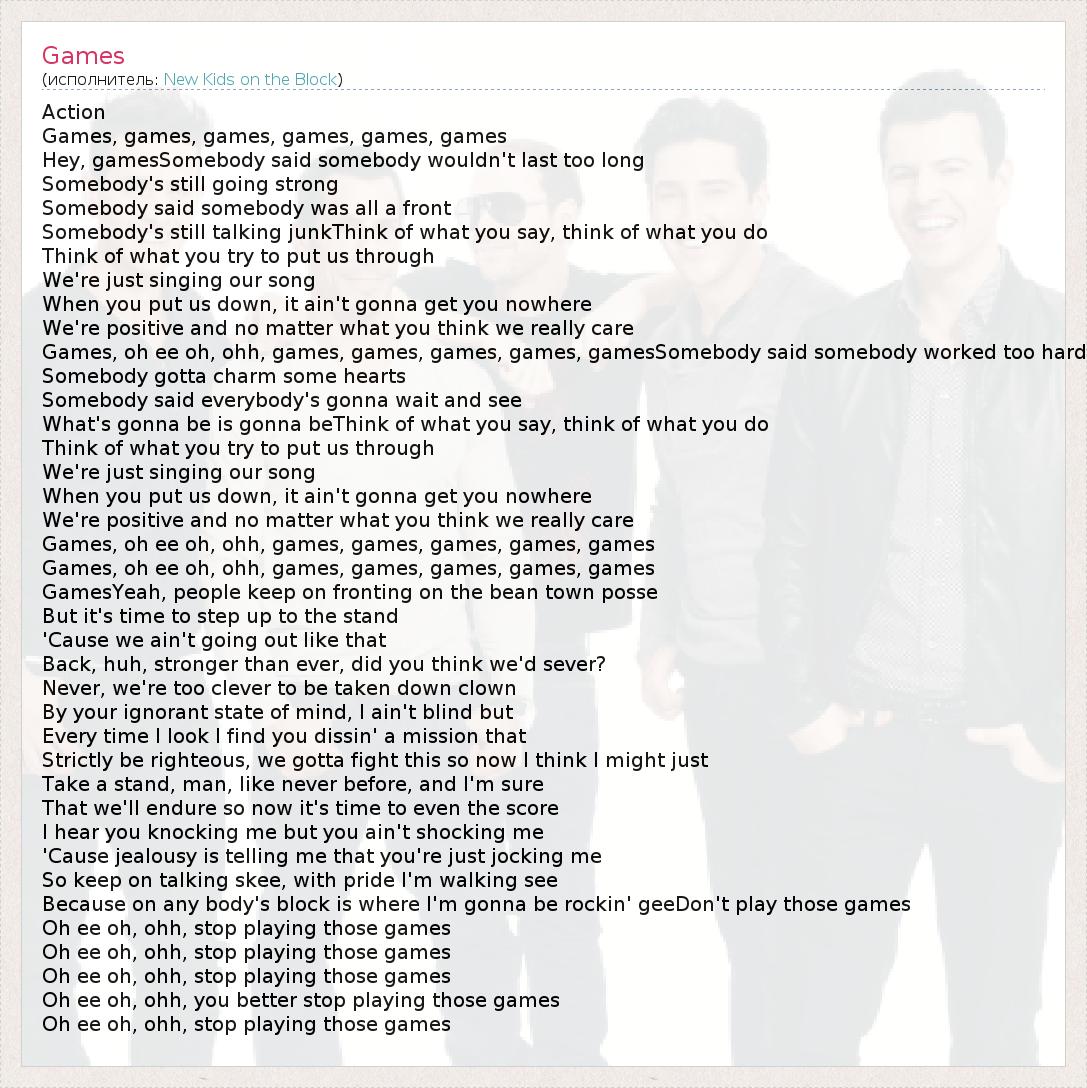 Games, oh ee oh, ohh, games, games, games, games, gamesSomebody said somebody worked too hard