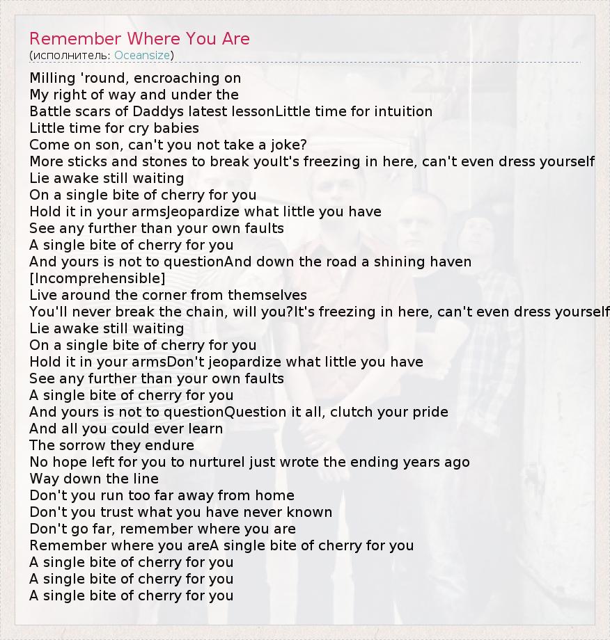 ГлавнаяИсполнителиOceansizeRemember Where You Are