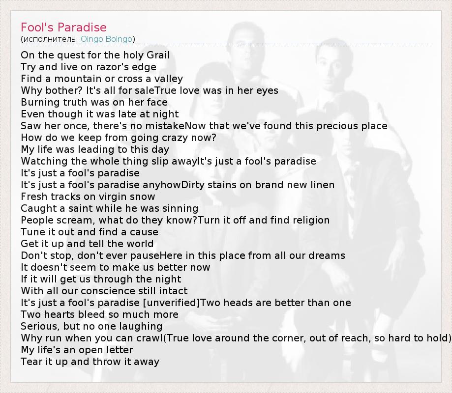 А как ты думаешь, о чем песня "Fool's Paradise" ?