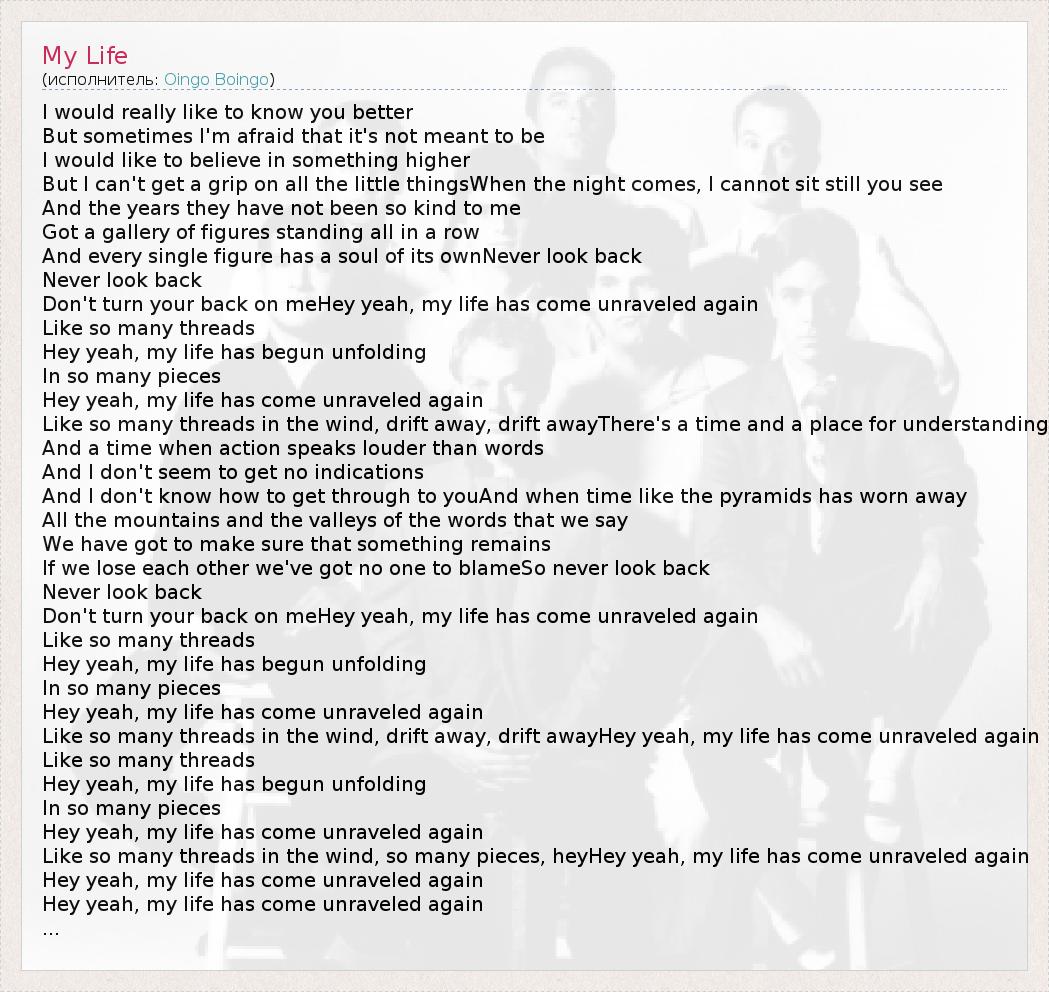 Like so many threads in the wind, so many pieces, heyHey yeah, my life has come unraveled again