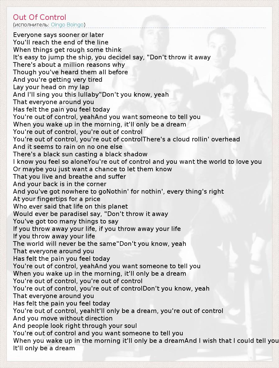 А как ты думаешь, о чем песня "Out Of Control" ?