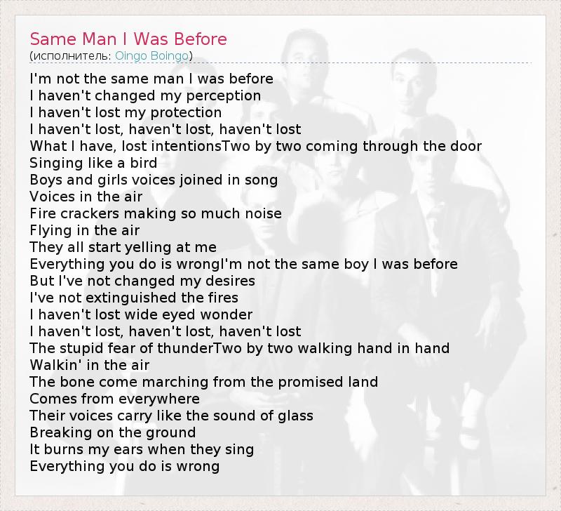 А как ты думаешь, о чем песня "Same Man I Was Before" ?