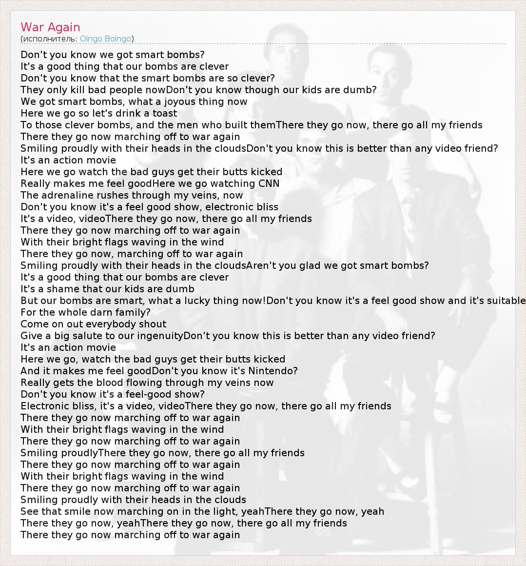 А как ты думаешь, о чем песня "War Again" ?