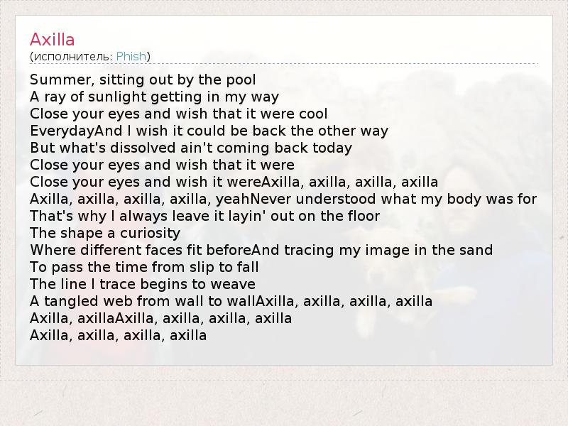 А как ты думаешь, о чем песня "Axilla" ?