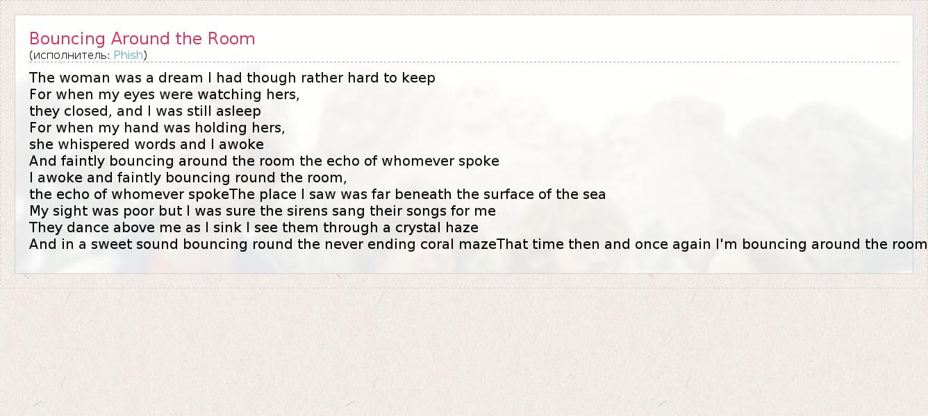 А как ты думаешь, о чем песня "Bouncing Around the Room" ?