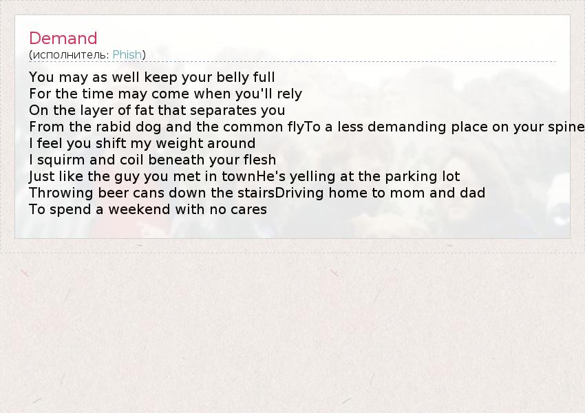 Это интересно:Phish — американская рок-группа, примечательная своими джем-сейшнами, импровизациями и постмодернистским смешением жанров. Phish была образована в 1983 году в университете Вермонта. Четыре ее участника выступали вместе 21 год, пока не распались в августе 2004 года. Их музыка содержала в себе элементы широкoго спектра жанров, и каждый их концерт был оригинальным в плане исполнения песен, порядка... продолжение