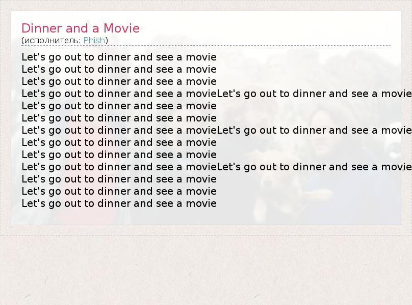 А как ты думаешь, о чем песня "Dinner and a Movie" ?