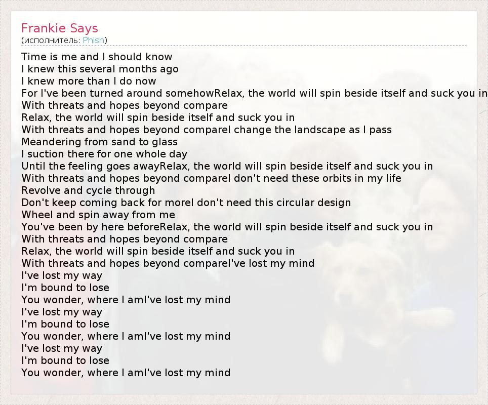 А как ты думаешь, о чем песня "Frankie Says" ?