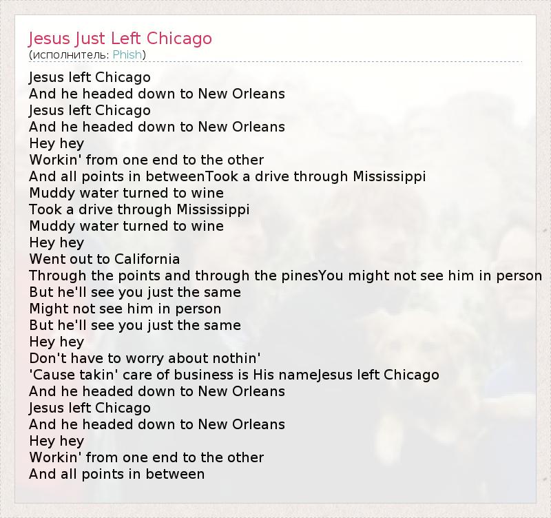 А как ты думаешь, о чем песня "Jesus Just Left Chicago" ?