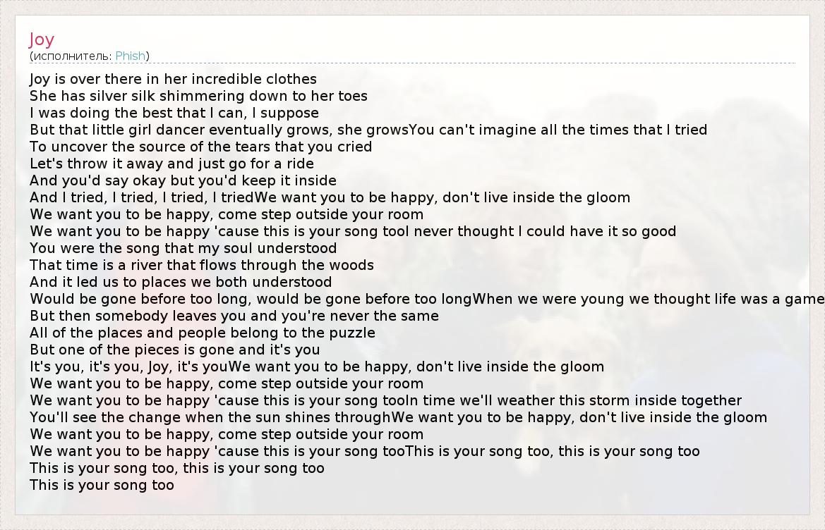 We want you to be happy 'cause this is your song tooThis is your song too, this is your song too