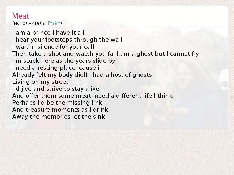 Это интересно:Phish — американская рок-группа, примечательная своими джем-сейшнами, импровизациями и постмодернистским смешением жанров. Phish была образована в 1983 году в университете Вермонта. Четыре ее участника выступали вместе 21 год, пока не распались в августе 2004 года. Их музыка содержала в себе элементы широкoго спектра жанров, и каждый их концерт был оригинальным в плане исполнения песен, порядка... продолжение