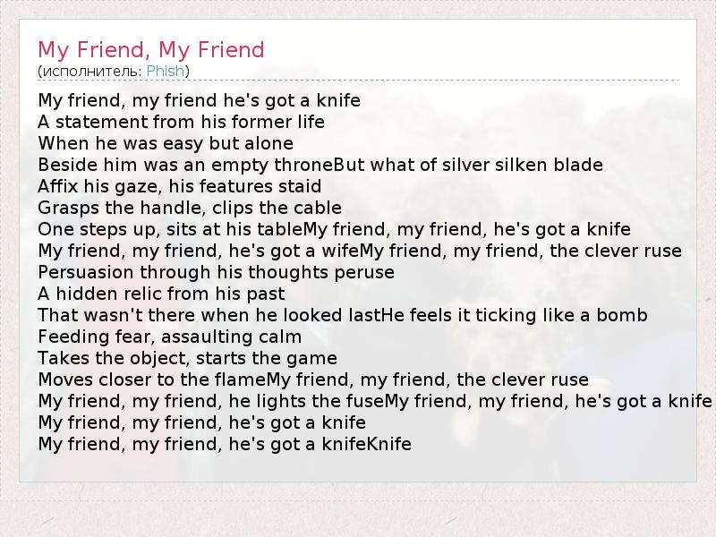 А как ты думаешь, о чем песня "My Friend, My Friend" ?