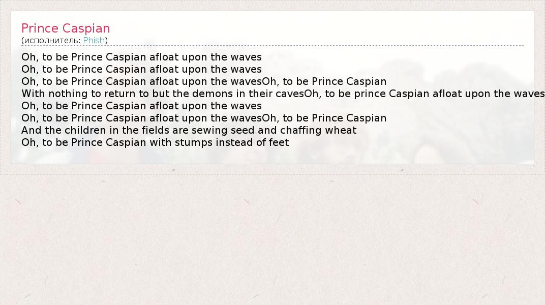 А как ты думаешь, о чем песня "Prince Caspian" ?