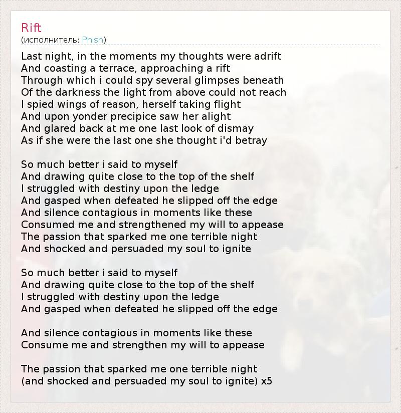Это интересно:Phish — американская рок-группа, примечательная своими джем-сейшнами, импровизациями и постмодернистским смешением жанров. Phish была образована в 1983 году в университете Вермонта. Четыре ее участника выступали вместе 21 год, пока не распались в августе 2004 года. Их музыка содержала в себе элементы широкoго спектра жанров, и каждый их концерт был оригинальным в плане исполнения песен, порядка... продолжение