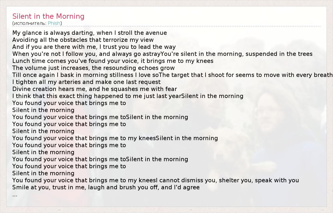 ГлавнаяИсполнителиPhishSilent in the Morning