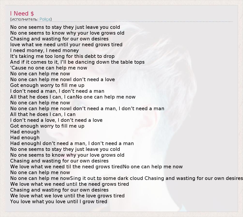 We love what we need til the need grows tiredNo one can help me now