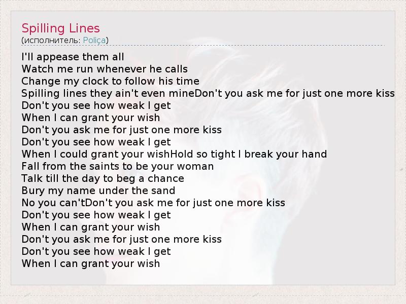А как ты думаешь, о чем песня "Spilling Lines" ?