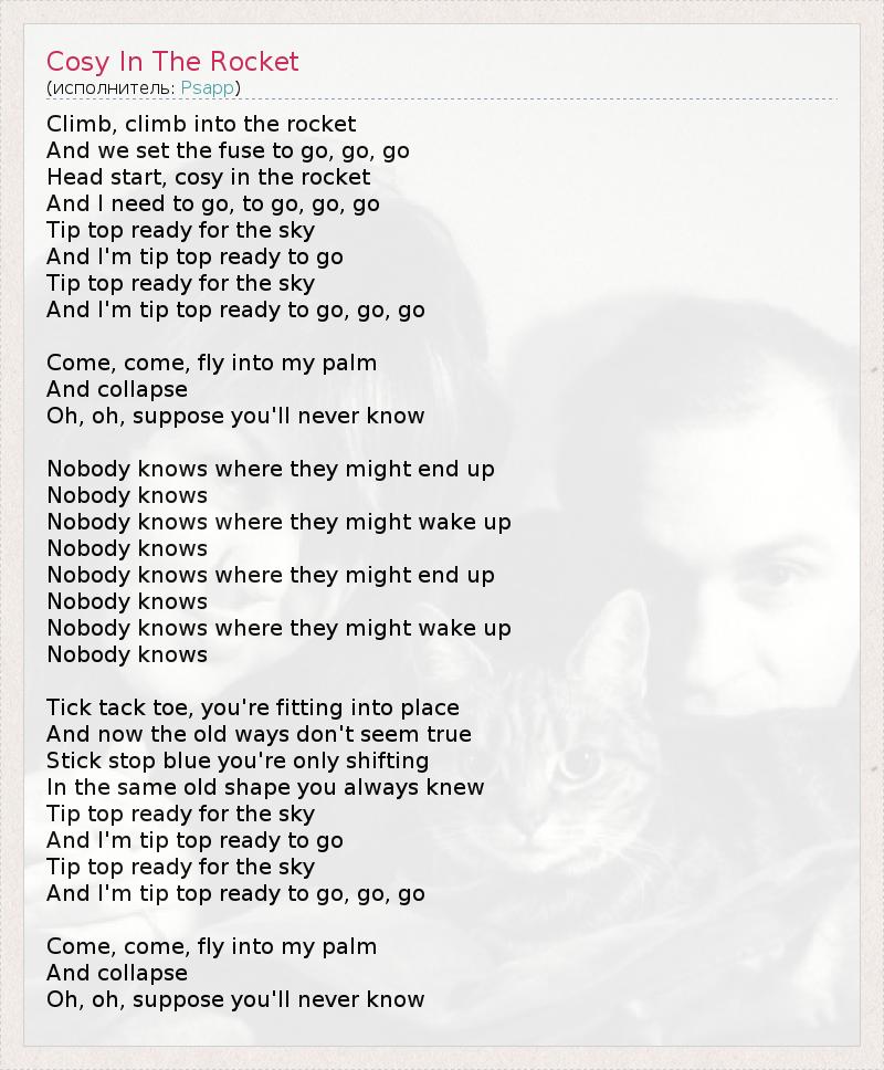 А как ты думаешь, о чем песня "Cosy In The Rocket" ?