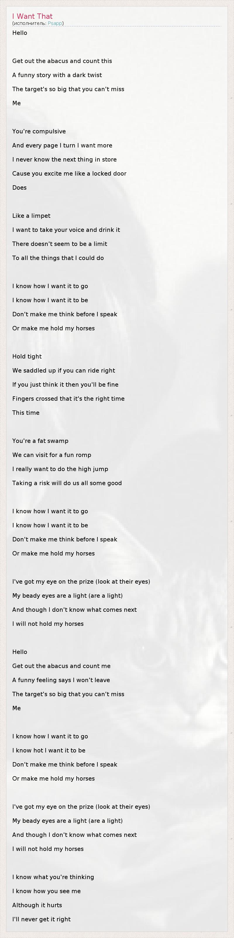 А как ты думаешь, о чем песня "I Want That" ?