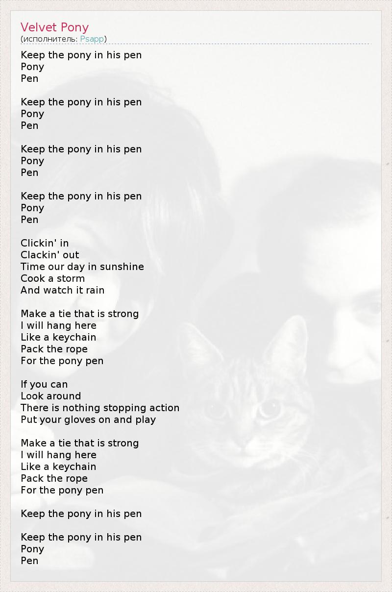 А как ты думаешь, о чем песня "Velvet Pony" ?