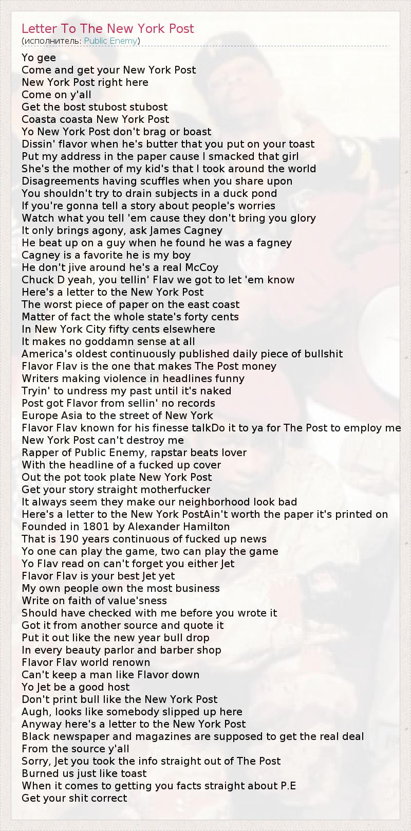 ГлавнаяИсполнителиPublic EnemyLetter To The New York Post