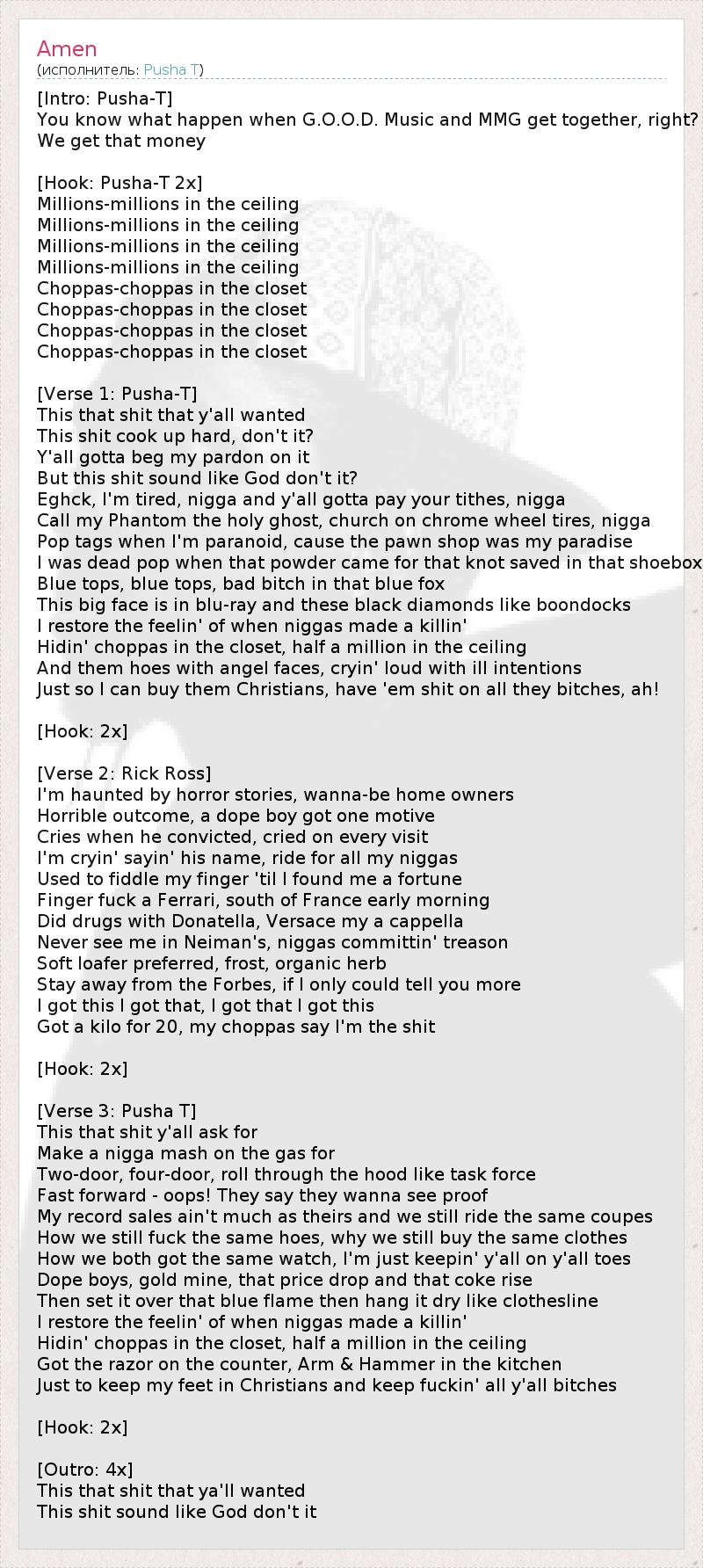 Just to keep my feet in Christians and keep fuckin' all y'all bitches