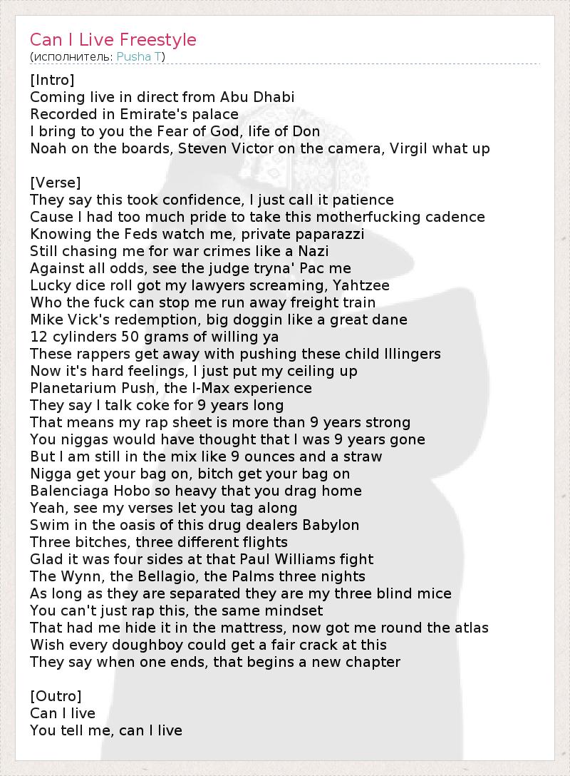 ГлавнаяИсполнителиPusha TCan I Live Freestyle