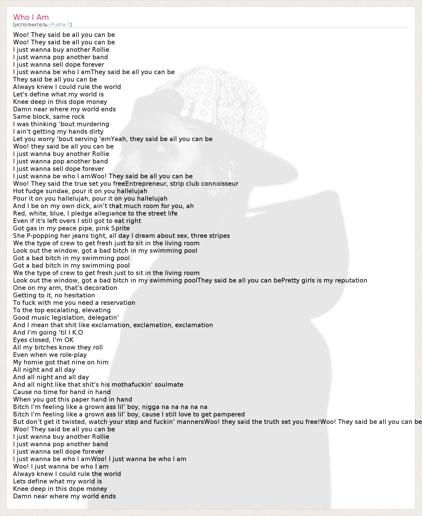 Это интересно:Pusha T (наст. имя Terrence Thornton) (родился 14 мая 1977) является основным рэппером Вирджиния-Бич и половиной хип-хоп дуэта Clipse. В сентябре 2010 года было объявлено о том, что он подписал контракт с лейблом Канье Уэста GOOD Music и 21 марта 2011 выпустил свой первый сольный микстейп, Fear of God.Родился в Бронксе, Нью-Йорк, но вскоре переехал в Норфолк, штат Вирджиния. В 1992 году Terrence и его брат Gene... продолжение
