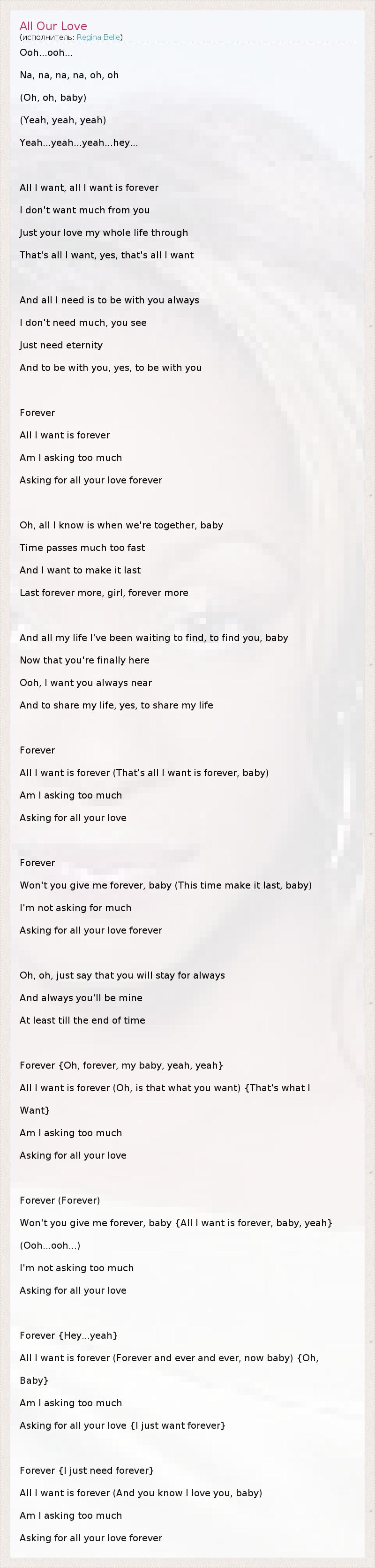 All I want is forever (Forever and ever and ever, now baby) {Oh,