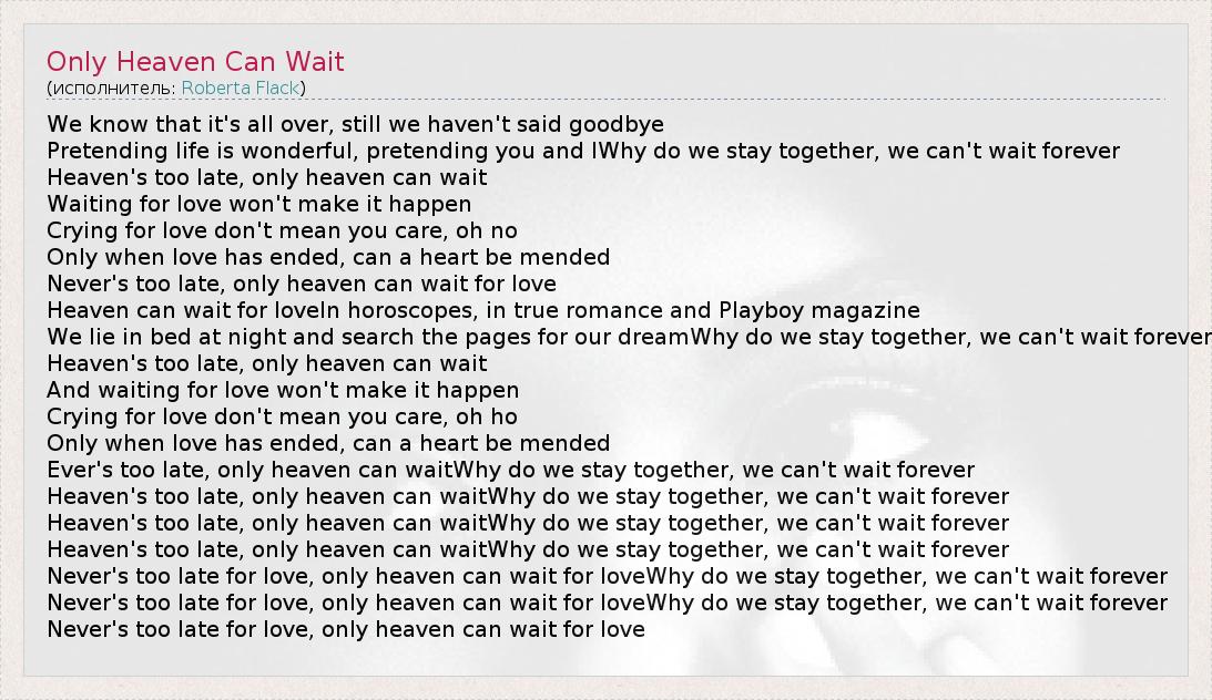 А как ты думаешь, о чем песня "Only Heaven Can Wait" ?