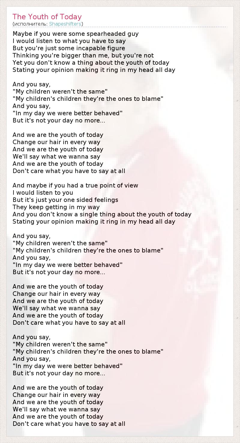 А как ты думаешь, о чем песня "The Youth of Today" ?