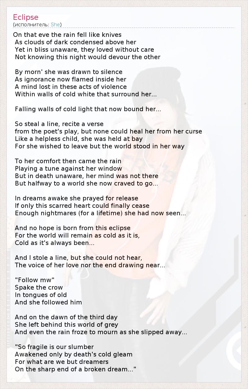 Это интересно:SHE - шведский электронный проект Петра Тжаски (Он же Pjat Lain). Пётр родился 20 июня 1983 в городе Кракове, Польша. В возрасте пяти лет переехал с родителями в Швецию. С детства учился игре на фортепиано и виолончели, уже тогда загорелся желанием писать музыку. По его словам: “Я не мог понять как можно учиться играть на пианино играя произведения других авторов, я хотел играть собственную музыку”... продолжение
